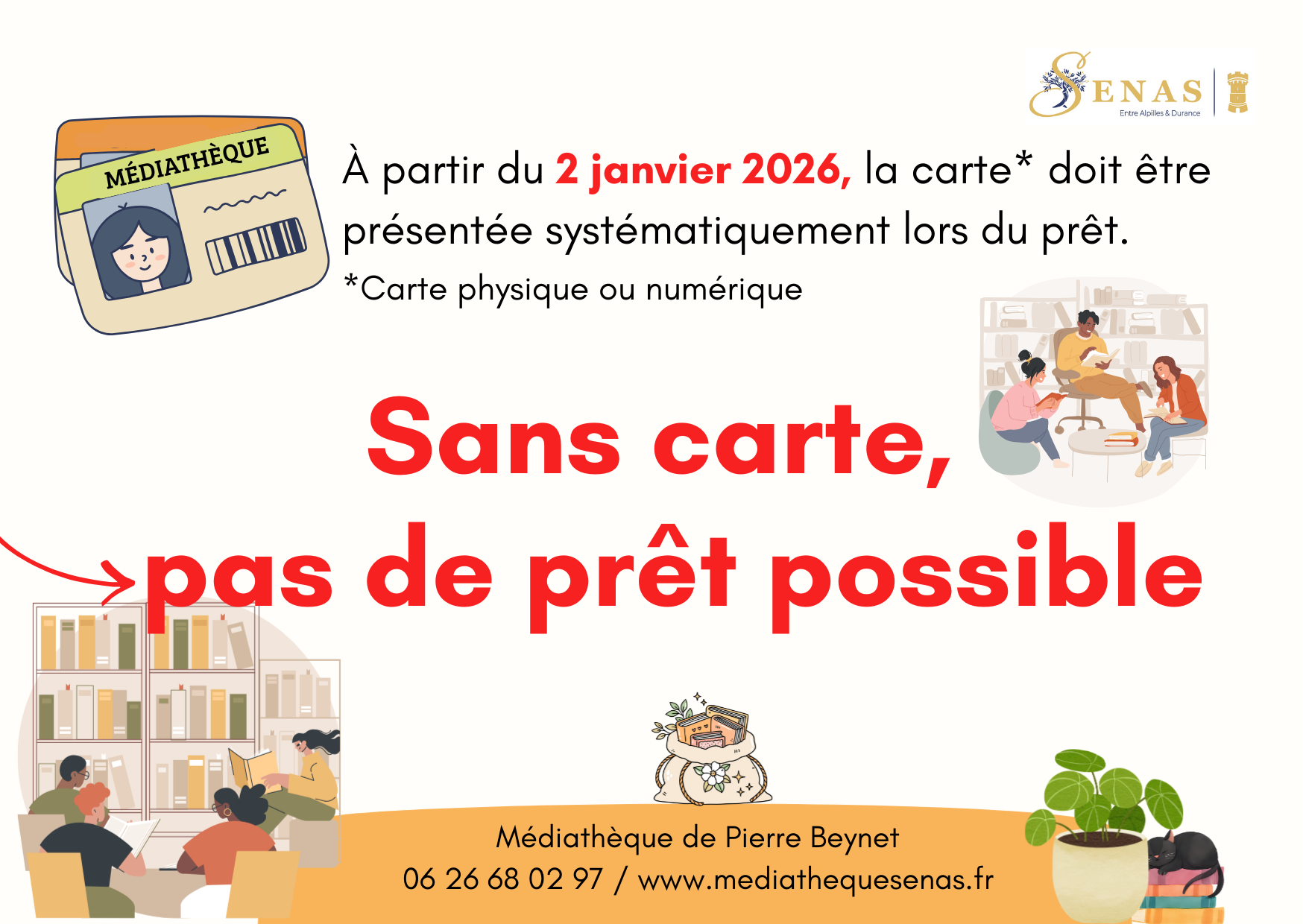 A partir du 2 janvier 2026, plus aucun prêt ne sera fait sans présentation de la carte de médiathèque. Comme stipulé dans le règlement de...