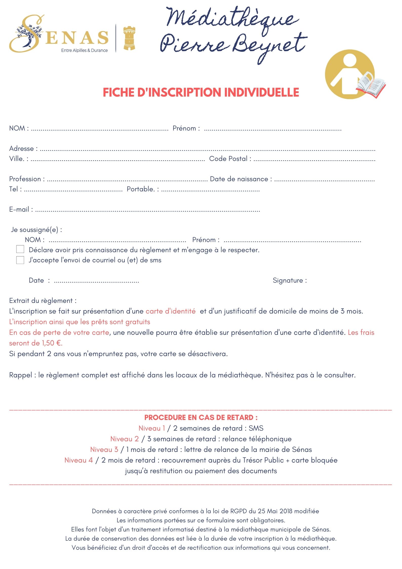 - Formulaire d'inscription pour une personne : Télécharger ici