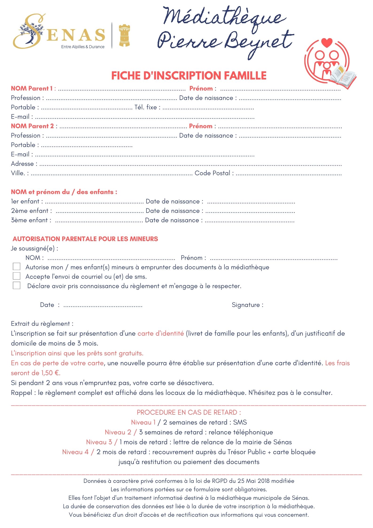 - Formation d'inscription familial :Télécharger ici