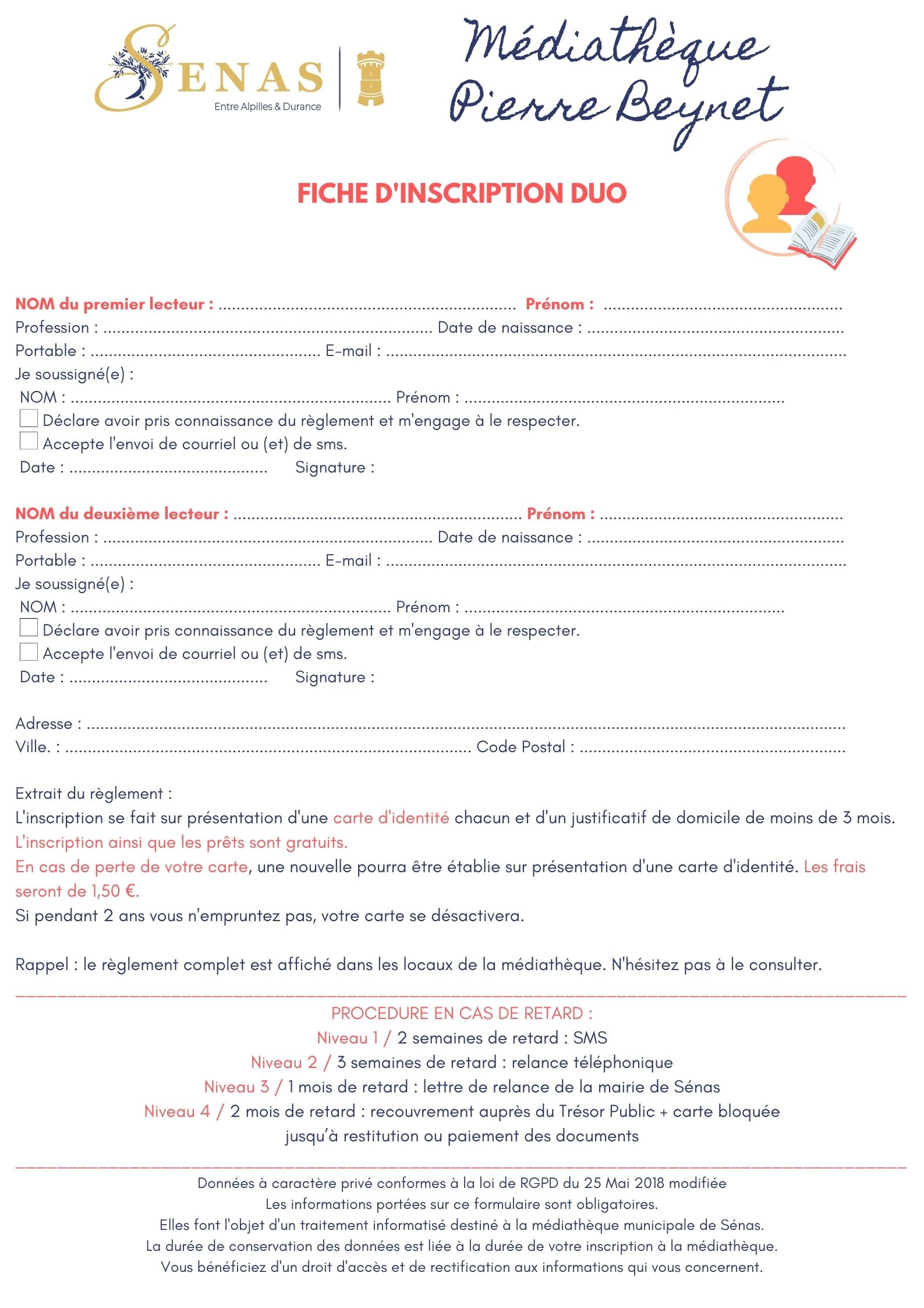 - Formulaire d'inscription pour deux personnes : Télécharger ici